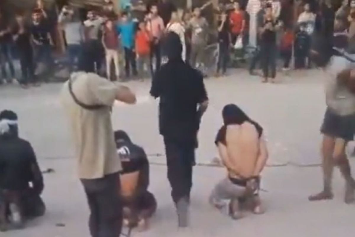 Na njemu se vide maskirani muškarci, neki od njih imaju zelene Hamasove trake na glavi, kako prisiljavaju sedam Palestinaca da kleknu te pucaju na njih.