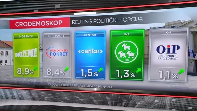 HDZ, iako u blagom padu, i dalje je premoćno ispred svih ostalih stranaka (25,6 posto). SDP pak blago raste (16 posto), ali je i dalje deset postotnih poena slabiji.