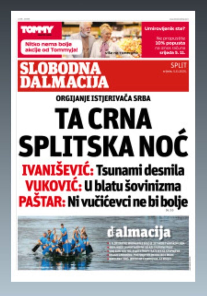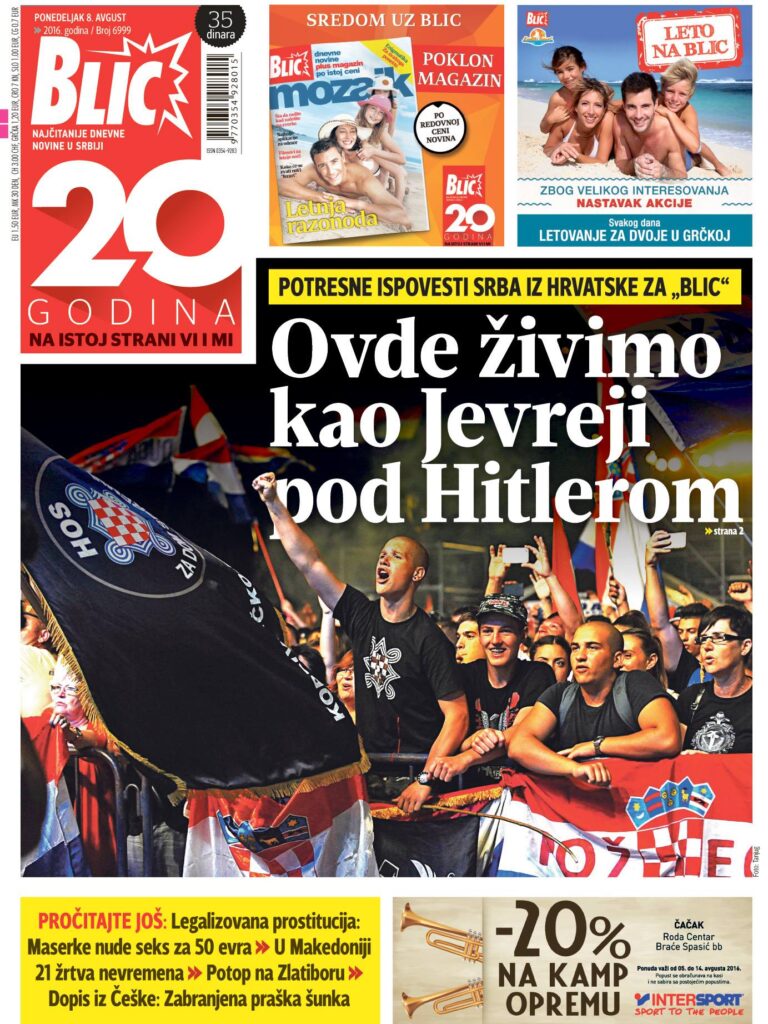 I na kraju je slika naslovnice Blica, iz beogradske mašinerije užasa još iz 2016. godine “Potresne ispovesti Srba iz Hrvatske: Ovde živimo kao Jevreji pod Hitlerom!”.