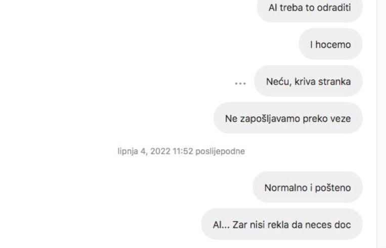 Baričić napisao djevojci: “Kriva stranka, ne zapošljavamo preko veze”