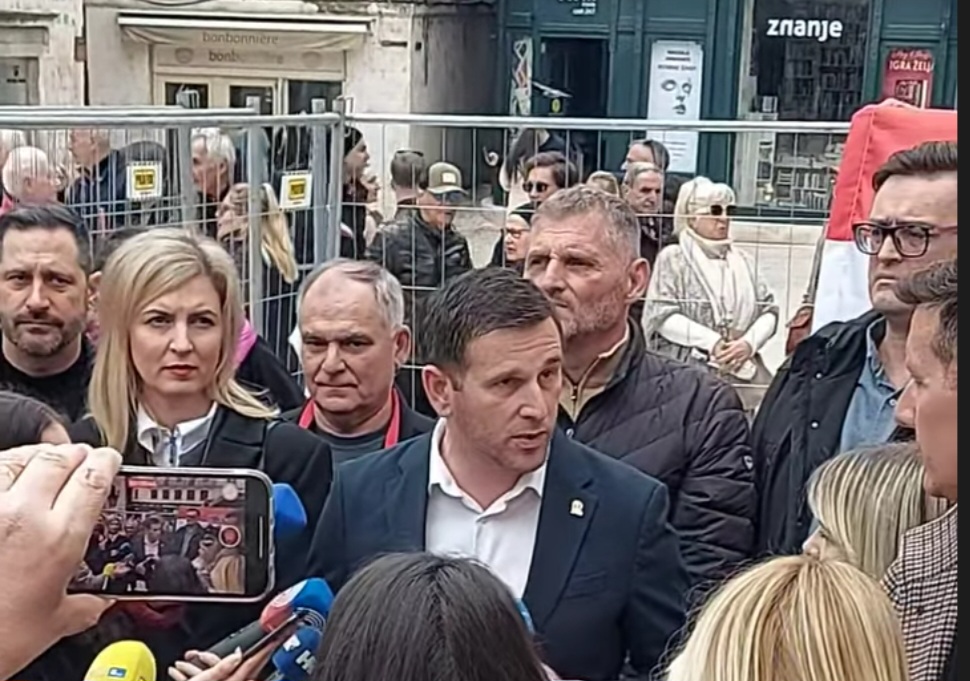Prosvjed je započeo obraćanjem Tomislava Šute, koji je naglasio važnost okupljanja u ovom trenutku za zaštitu kulture i identiteta Splita.