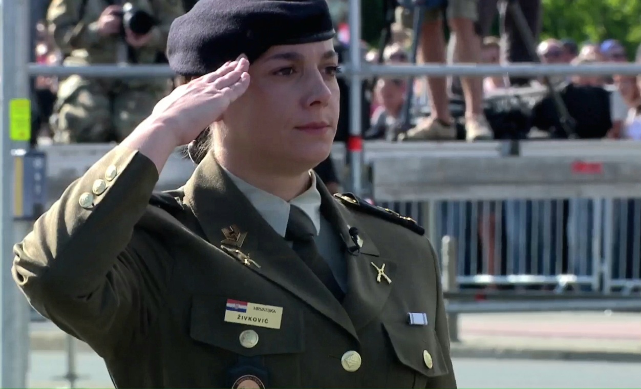 Vojnom mimohodu koji je obilježio Dan pobjede i domovinske zahvalnosti, jedno lice posebno je privuklo pažnju – ono natporučnice Hrvatske vojske Mihaele Živković. Zapovijedajući kadetima pri svečanom preuzimanju zastave Republike Hrvatske iz ruku branitelja, Mihaela je svojom staloženošću, odlučnošću i ponosom simbolično spojila prošlost, sadašnjost i budućnost hrvatske vojske.
