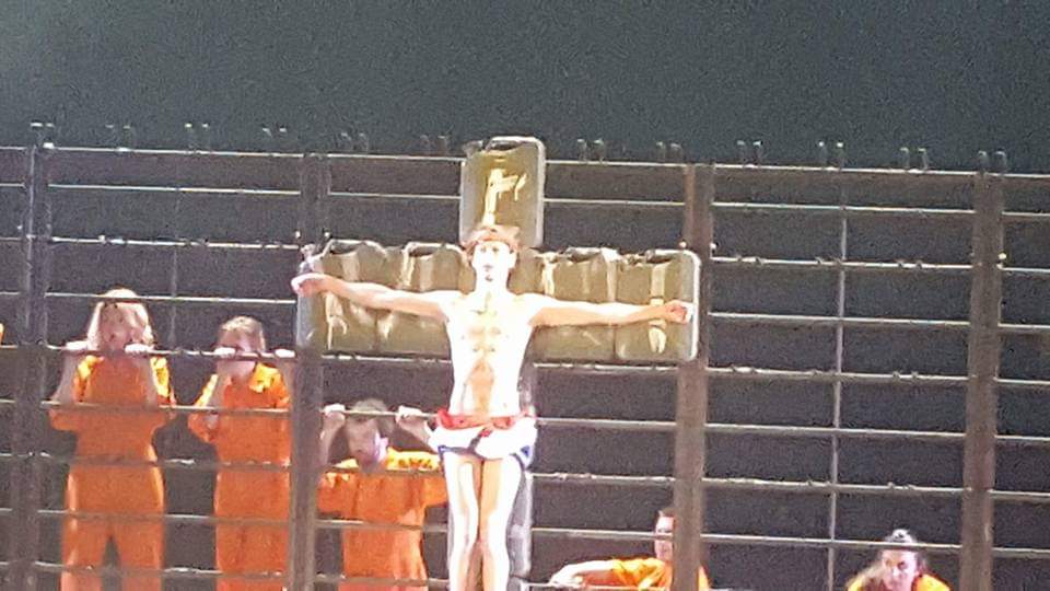 U predstavi u gradskom kazalištu Kerempuh izmjenjuju se scene u kojima glumačko uprizorenje biskupa Bogovića dolazi na plinskoj boci te likovima iz predstave – svi su prikazani kao svinje – daje kokain imitirajući pričest, pri čemu Zlatko Hasanbegović u trenutku muslimanske molitve prima kokainsku “pričest”.