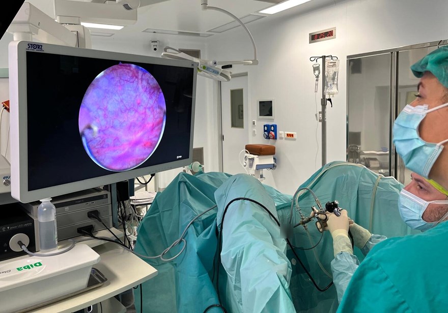 ‘Primjena dijagnostičkog sredstva s heksaminolevulinatom značajno povećava vidljivost sumnjivih promjena u mokraćnom mjehuru. Nakon instilacije u mjehur tumorske stanice ga nakupljaju više nego zdravo tkivo pa se pri pregledu plavim svjetlom promjene jasnije ističu fluorescencijom. Na kameri se tumorske promjene ocrtavaju kao ljubičaste ili jarko ružičaste pa se bolje uočavaju i one lezije koje pod standardnim bijelim svjetlom mogu ostati nevidljive, osobito rane i plošne promjene poput CIS-a’, istaknuo je dr. Mirnes Selimović.
