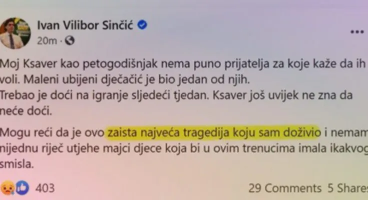 HomeVijesti  Vilibor Sinčić: “Ubijeni dječak bio je prijatelj moga sina, trebao je doći na igranje”